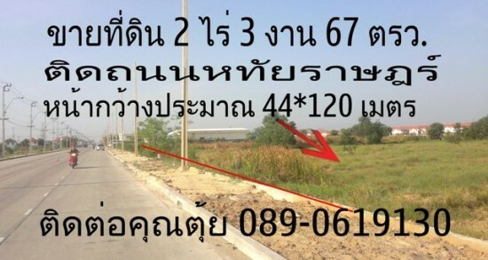 ขายที่ดิน 2 ไร่ 3 งาน 67 ตารางวา ติิดถนนหทัยราษฎร์ ถนนกว้าง 4 เลน ที่ดินหน้ากว้างประมาณ 44 * 120 เมตร ขายตารางวาละ 32,000 - ที่ดินเหมาะสำหรับทำโกดังเก็บของ, ที่ดินตั้งอยู่ถนนหทัยราษฏร์ เขตคลองสามวา กรุงเทพฯ การเดินทางสะดวกมีรถเมล์,รถตู้,รถสองแถวผ่าน สามารถออกถนนสุขาภิบาล 5 ถนนสายไหม,ถนนลำลูกกา ,ถนนนิมิตรใหม่,ถนนเลียบคลองสิบสอง(ซอยวัดคู้บอล) ใกล้ตลาดวัดหนองใหญ่,ตลาดหทัยมิตรถนนหทัยราษฏร์,ห้างบิ๊กซีเลียบคลองสิบสอง สนใจติดต่อสอบถามได้ที่คุณ อำนาจ 085-1946234 หรือคุณธีรภัทร (ตุ้ย) 089-0619130 หรือเข้าชมเว็บไซต์ได้ที่ http://www.tplandhouse.com