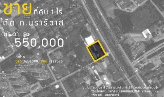 ขายที่ดิน 1 ไร่เศษ ซอย นราธิวาส 24 ติดถนน นราธิวาสราชนครินทร์
