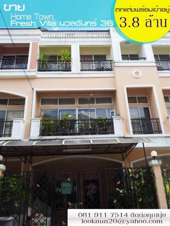 ขายโฮมทาวน์ Fresh Villa นวลจันทร์ 36 น้ำไม่ท่วม หมู่บ้านยกสูง ตกแต่งพร้อมเฟอร์นิเจอร์ เข้าอยู่ได้เลย