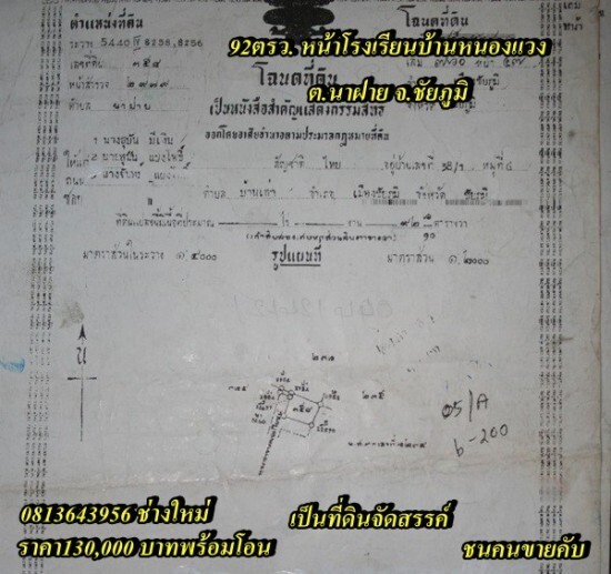 ขายที่ดิน92ตรว.จัดสรรค์หน้าโรงเรียนบ้านหนองแวงต.นาฝายจ.ชัยภูมิ(ขายแล้วคับ)