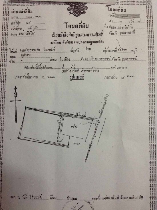 ขายที่ดินมีโฉนด อำเภอเหล่าเสือโก้ก จ.อุบล