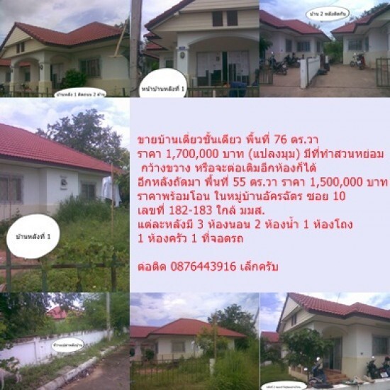 ขายบ้านอัครฉัตรธานี (ขามเรียง) ซอย 10 บ้านเลขที่ 182- พื้นที่ 56 ตร.วา ราคา 1,500,000 บาท ราคาพร้อมโอน ในหมู่บ้านอัครฉัตร ใกล้ มมส. แต่ละหลังมี 3 ห้องนอน 2 ห้องน้ำ 1 ห้องโถง 1 ห้องครัว 1 ที่จอดรถ 0876443916 ติดต่อได้เลยครับ...มาก่อนวางมัดจำก่อนได้เลย...