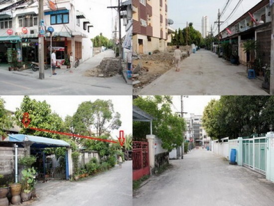 ทางเข้าเป็นถนนคอนกรีตกว้าง 6เมตร หันหน้าทางทิศใต้