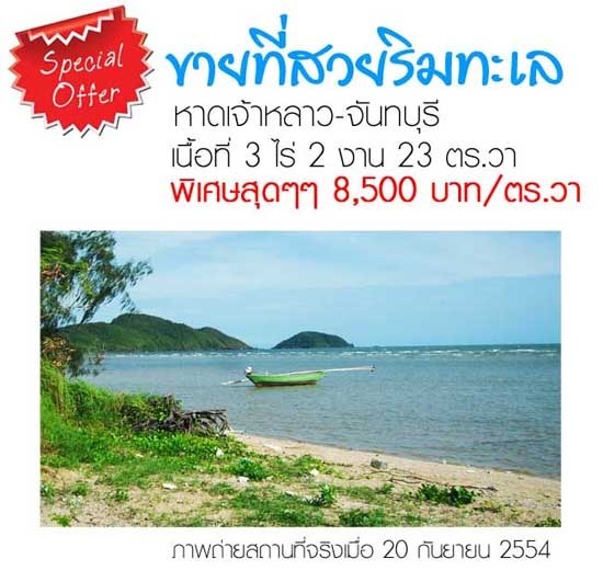 เนื้อที่ 3 ไร่ 2 งาน 23 ตรว. ริมหาดเจ้าหลาว-จันทบุรี