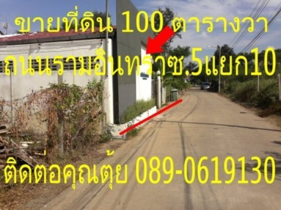 ขายที่ดิน 100 ตรว.(ถมแล้ว) ถ.รามอินทราซ.5 แยก 10 เขตบางเขน กทม.ขาย 35,000/ ตรว.