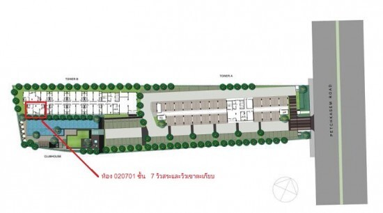 ขายดาวน์ห้องคอนโดบ้านคุ้นเคย หัวหิน ของแสนสิริ 2 Bedroom ชั้น 7 ตึก B (อาคารมีทั้งหมด 8 ชั้น) ห้องเลขที่ 020701 ขนาด 60.72 ตร.ม.