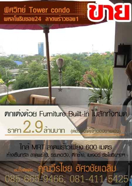 ขายคอนโดใกล้MRT ลาดพร้าว 600 เมตร พิศวิทย์ Tower condo บรรยากาศสงบเงียบ ร่มรื่น ให้ความเป็นส่วนตัว
