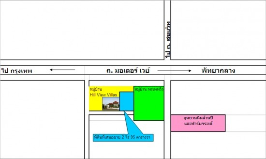 ขายที่ดินสวยติดหมู่บ้าน Hill View Villas ห่างจากถใ มอเตอร์เวย์ขาออก ประมาณ 300 เมตร มีถนนคอนกรีตผ่าน ขายตารางวาละ 12,000 บาท