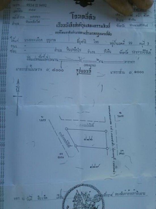 ขายที่ดินโฉนด 2 งานติดถนนบายพาสสายชะอำ-ปราณบุรีห่างหัวหินประมาณ10นาทีขาย 1,800,000 บาท