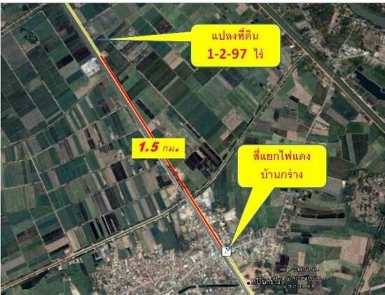 ขายที่ดินติดถนนสี่เลนส์บ้านกร่าง 1-2-97 ไร่ ตรงข้ามท่าข้าวชัยมงคล