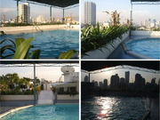 ห้องขนาด 80 ตรม. 2 นอน 2 น้ำ 1 รับแขก 2 ระเบียง พื้นหินอ่อน ค่าเช่ารายเดือน 15,000 บาท (รวมส่วนกลาง) ค่าเช่ารายวัน 1,200 บาทต่อคืน