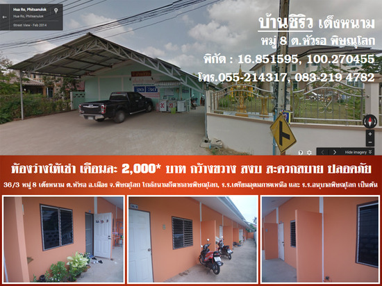 ห้องว่างให้เช่า เต็งหนาม หมู่8 ต.หัวรอ อ.เมือง จ.พิษณุโลก