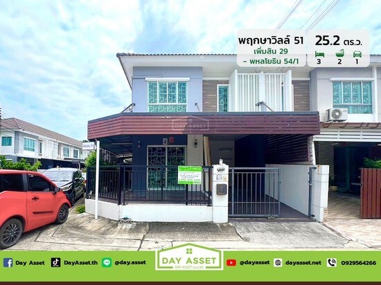 ขายทาวน์โฮม 2 ชั้น หมู่บ้าน พฤกษาวิลล์ 51 เพิ่มสิน 29 (ซอย ทองงอก) - พหลโยธิน 54/1 เนื้อที่ 25.2 ตร.ว. ขายเพียง 2,590,000 ล้านบาท