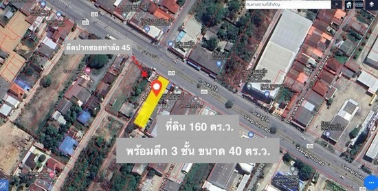 ที่ดินติดถนนใหญ่ 158 ตร.ว. พร้อมตึก 3 ชั้นและหลังคาเหล็ก ตรงข้ามโฮมโปร ท่าล้อ 45 กาญจนบุรี