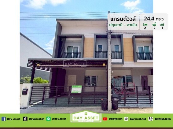 ขายทาวน์โฮม 2 ชั้น หมู่บ้าน แกรนด์วิลล์ ปทุมธานี-สายใน หลังริม เชื่อมต่อถนนปทุมธานี-สายใน เนื้อที่ 24.4 ตร.ว. ขายเพียง 2,890,000 ล้านบาท