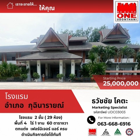 ขายโรงแรมหรู นารายเลอณ์บัว อ.กุฉินารายณ์ จ.กาฬสินธุ์