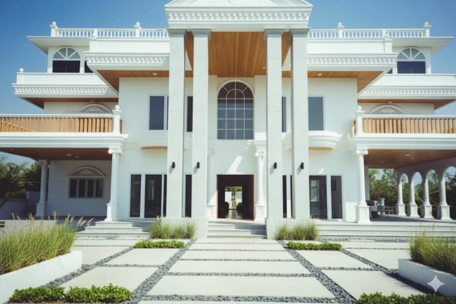 นิคมอุตสาหกรรมลาดกระบัง ขายคฤหาสน์ บ้าน 3.5 ชั้นรวมดาดฟ้า กว้างใหญ่ 280 ตร.วา. 608 ตร.ม.รพ.นพรัตนราชธานี คุ้มเกล้า 1.9 กม. รร.วัดทองสัมฤทธิ์ 500 ม. ติดทะเลสาบ 40 ไร่ ขาย 19.99 ลบ. 5นอน 5 น้ำ วัดทิพพาวาส ตลาดยิ่งเจริญทรัพย์ 2.3 กม.
