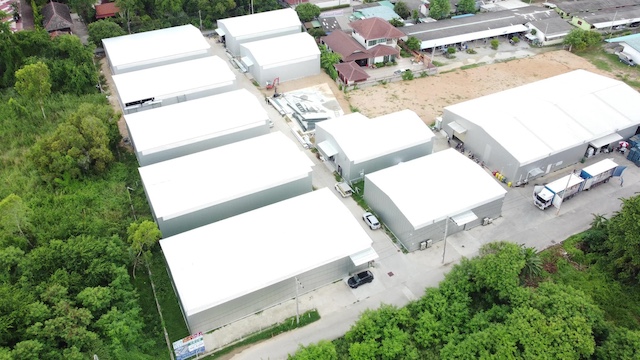 BST971 | ให้เช่าโกดังใหม่ บางละมุง ชลบุรี ติดถนนสุขุมวิท – พื้นที่ 300–900 ตร.ม. รถเทรลเลอร์เข้าได้ โกดังสำเร็จรูปสร้างใหม่