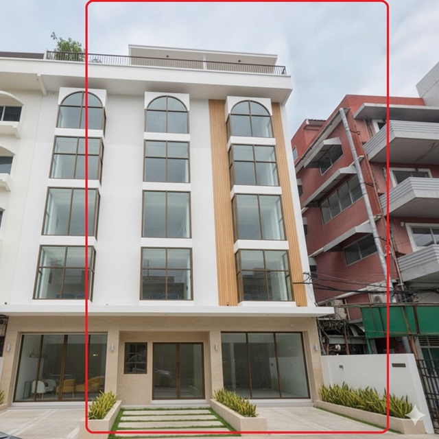 3-4จอดรถ MRTลาดพร้าว101 300ม. เช่าอาคาร 5ชั้น หัวมุม 2คูหา 40ตร.วา. 640ตร.ม. ม.รัตนบัณฑิต 1.2 กม. 15น้ำ 15นอน เดอะมอลล์ บางกะปิ 1.5 กม.