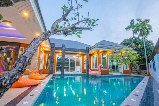 ขายพูลวิลล่าพร้อมผู้เช่า ขนาด 191 ตรว 4นอน 4น้ำ หลังมุม เหมาะลงทุน ได้ผลตอบแทนทันที ใกล้สวนนงนุช ห้วยใหญ่ บางละมุง ชลบุรี