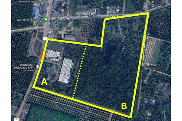 เป็นที่ดิน 2 แปลงต่อเนื่องกัน สามารถเลือกซื้อเฉพาะแปลง A (โรงงาน)