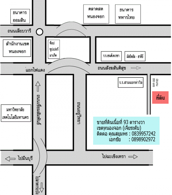 ขายที่ดิน เนื้อที่ 93 ตรว. เขตหนองจอก ใกล้โรงเรียนสามแยกท่าไข่ ราคา 500,000 บาท