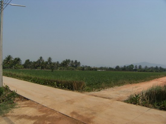ที่ดินติดกับถนนใหญ่ ผ่านกลางที่ แบ่งเป็นสองแปลง แปลงละสิบกว่าไร่