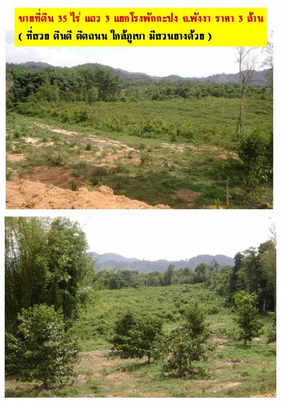 ขายที่สวย ดินดี ที่สวน ติดถนนใหญ่ ใกล้ภูเขา 35 ไร่ แถว อ.กะปง จ.พังงา 3 ล้านบาท