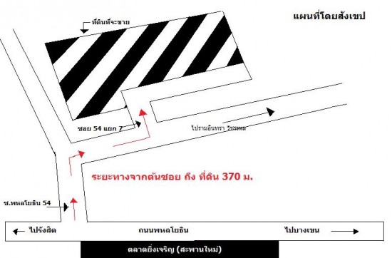 ขายที่ดินเปล่า ทำเลดี ซอยพหลโยธิน 54 (เทียนสวน) 5 ไร่ 3 งาน 43 วา ห่างจากปากซอยเพียง 370 เมตร ใกล้สาธารณูปโภค เช่น ตลาดยิ่งเจริญ(สะพานใหม่), โลตัส , SBAC , โรงพยาบาลภูมิพล, Big C,มีโครงการรถไฟฟ้าวิ่งผ่าน เหมาะสำหรับทำเป็นอพาทร์เมนท์ หรือคอนโด และอื่นๆ ไม่มีภาระผูกพันกับธนาคารเพียงตารางวาละ 30,000 บาท (งดนายหน้า)