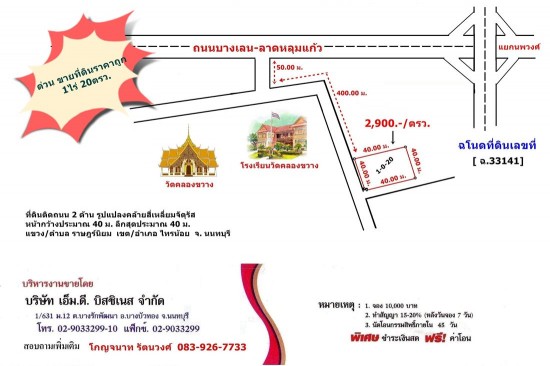 ด่วน ขายที่ดินใกล้แยก นพวงศ์ เดินน้ำ เดินไฟ ลอมรั้ว ขุดถมที่ให้