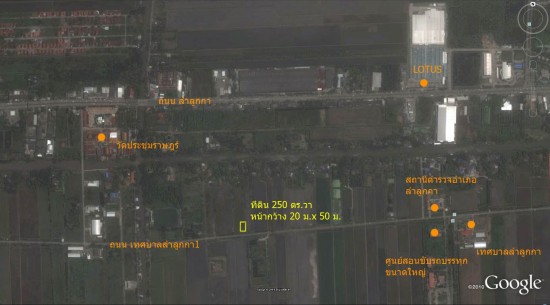 เนื้อที่ 250 ตร.ว. หน้ากว้าง 20ม.x50ม.