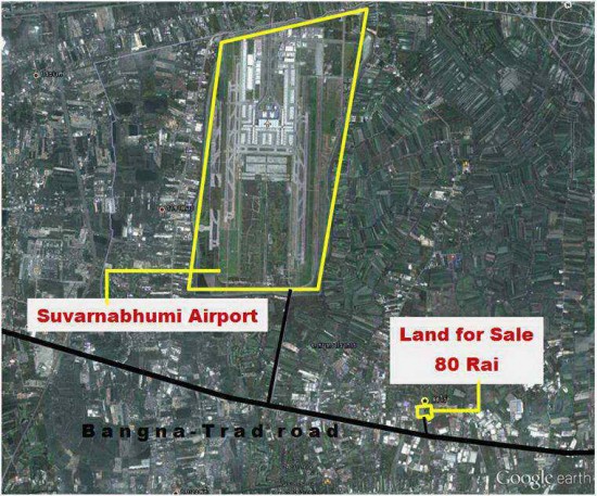 ขายที่ดิน 80ไร่ บางนา-ตราด กม.19.5 พื้นที่สีม่วง ใกล้สนามบินสุวรรณภูมิ