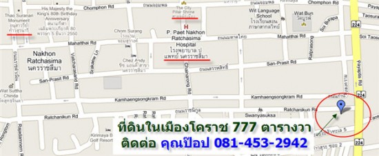 ขายที่ดิน ในเมืองโคราช บนถนนราชนิกูล ทำเลดี สวยๆ 777 ตร.วา อยู่ไม่ไกลใจกลางเมือง