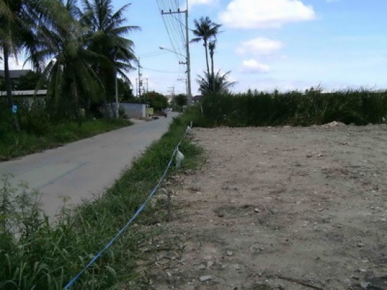 จะเจอทิวมะพร้าวด้านขวามือ มีทีถมแล้วอยู่ด้านซ้ายมือ
