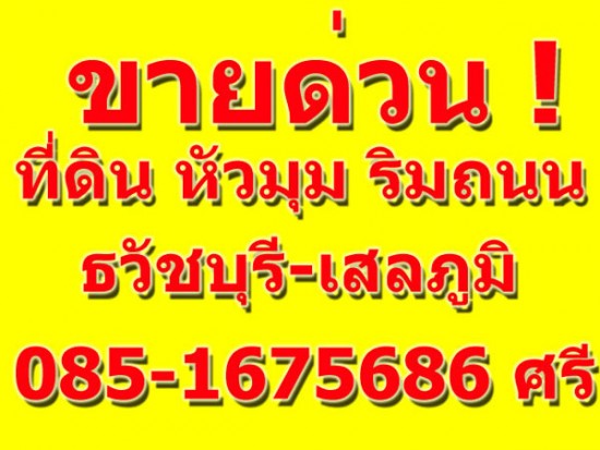 ขายด่วนที่ดิน 2 งาน 29 ตารางวา ริมถนนแจ้งสนิท ธวัชบุรี- เสลภูมิ หัวมุมทางเข้าบ้านท่าบ่อ สวยมากๆ สามารถสร้างตึกทำธุรกิจได้ 085-1675686 ศรี,084-0258786 ธวัชชัย 02-3929125...
