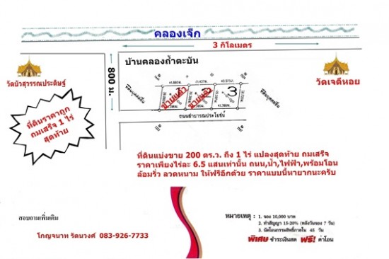 ที่ดินแบ่งขายไร่ละ 6.5 แสน ถมเสร็จ