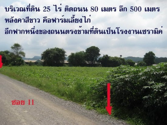 ติดถนน กว้าง 80 เมตร ยาว 500 เมตร ที่สวยเหมาะทำโรงงาน เพราะในย่านนั้นมีโรงงานหลายแห่งอยู่แล้ว เช่น โรงงานอาหารสัตว์ เบทาโกร 2 แห่ง โรงงาน บีทีจี ฟีดมิลล์ โรงงานเซรามิค