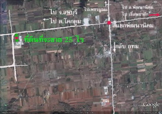 ขายที่ดิน จ.ลพบุรี อ.เมือง ต.นิคมสร้างตนเอง 25 ไร่ๆละ 260,000 บ. ติดถนน กว้าง 80 เมตร