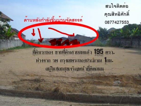 ขายที่ดินถมแล้วประมาณ 195 ตรว. ห่างจาก รพ กรุงเทพระยองประมาณ 1กม ใกล้ห้างสรรพสินค้า แหลมทองระยอง บิ๊กซี(กำลังพัฒนาให้ใหญ่กว่าเดิมอีก) และทะเล เดินทางไม่ถึง 10 นาที ใกล้วัดใกล้โรงเรียนและระบบสารธารณูประโภค ด้านหลังเพิ่งจะเริ่มสร้างหมู่บ้านจัดสรรค์ ขาย 1,350,000 บาทที่สวยถมเรียบร้อยหน้าติดถนนซอยสุขเจริญ ที่กำลังบูม ด่วนสนใจติดต่อ คุณสิทธิศักดิ์ 087-7427553