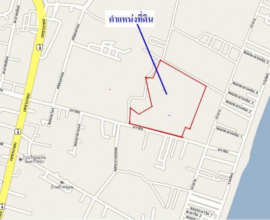 ขายที่ดิน 62 ไร่ติดถนนนราธิป ทางลงชายหาดชะอำ