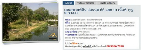ที่ตั้ง: ซ.อ่อน นุช 66 (ซ.โมราวรรณ 2) แยก 10 เข้าจากปากซอย ตรงไปเรื่อยๆ จนถึงแยกที่ 10 ด้านซ้ายมือ เลี้ยวเข้าแยก 10 ที่ดินอยู่ซ้ายมือก่อนข้ามคลอง (ด้านหน้าติดถนน ยาว 30 เมตร) ด้านข้างติดคลอง 1 ด้าน