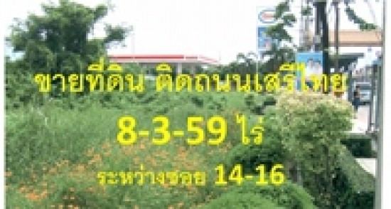 ขายที่ดิน ติดถนนเสรีไทย (ระหว่างซอย 14-16) 8-3-59 ไร่