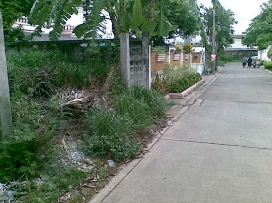 - ที่ดินถมสูงกว่าถนน 40 ซม. ล้อมรั้วปูน 4 ด้าน