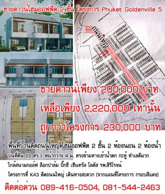 ขายดาวน์โฮมออฟฟิต 2 ชั้น โครงการ Phuket Goldenville 5 (ประหยัดได้ 230,000 บาท)