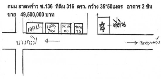 ขายที่ดิน ถนนลาดพร้าว ซ.136 ที่ดิน 316 ตรว. กว้าง 35*50 เมตร อาคาร 2 ชั้น