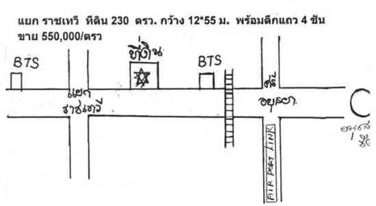 ขายที่ดิน แยก ราชเทวี ที่ดิน 230 ตรว. กว้าง 12*55 เมตร พร้อมตึกแถว 4 ชั้น