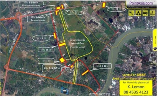 รายละเอียดและตำแหน่งที่ดินบริเวณ มหาวิทยาลัยนานาชาติ หอการค้า ปากเกร็ด นนทบุรี