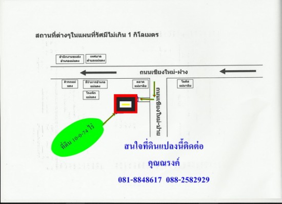 ที่ดินเนื้อที่สวยงามชื้อเกลงกำไรได้ดีเลยที่ดิน 10-0-74 ไร่ ราคา 3.8 ล้าน เขตเทศบาล อ.แม่แตง อยู่ย่านชุมชน อยู่บริเวณตลาดแม่มาลัยห่างจากตลาดเพียง 300 เมตร ใกล้เทศบาล, โลตัส, โรงพักและที่ว่าการอำเภอ เดินทางสะดวก เข้าออกได้หลายทาง สะดวกปลอดภัย เอกสิทธิ์เป็นโฉนดเจ้าของขายเอง คับ แต่ติดต่อคุณณรงค์ที่ดินตรงนี้สามารถทำการเกษตรได้อย่างสบายด้านหน้ามีคลอง ชลประทานทำการเกษตรได้ตลอดผมแนบแผนที่และรูป และโฉนดมาให้ดู 10-0-74 ไรราคาถูกแบบนี้หาอยากเพราะเจ้าของต้องการขายด่วน