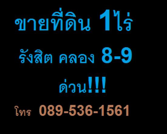 ขาย ด่วน!! ที่ดิน 1 ไร่ รังสิตคลอง 8-9 ราคากันเอง ติดต่อ คุณ ศศิพิมล 0895361561