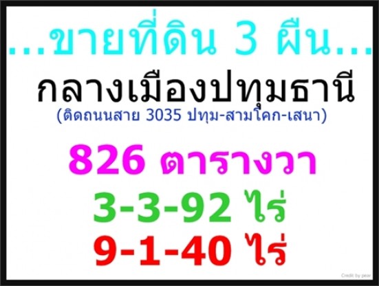 1. ขายที่ดินสวย ติดถนนใหญ่สาย 3035 (ปทุม - สามโคก - เสนา) ใกล้ศาลากลางจังหวัดปทุมธานี